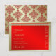 Den här eleganten, som heter Red and Guld indisk Damaskbröllop, har en guld-bakgrund med rött dammmönster. På framsidan finns ett guld-band med faux diamantband för namn och Lord Genesha precis ovanför. Baksidan har en röd bakgrund och guld med texten i guld. Den här uppsättningen har inbjudningar, sparar datumkort, svarskort, tackkort, bordsnummer-kort, vin-etiketter, bröllopsprogram och många fler dagar med bröllop-skrivbord i delar, favoriter och presenter som ska koordineras. Alla inslag är tryckta på våra högkvalitativa produkter, de omfattar inte äkta guld, juveler, prägling eller annat inslag. Alla utformningar är copyrightanteckningsbara uttryck, Inc. Alla höger reserverade.