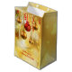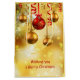Gåvan hänger lös med det röda och guld- julbaublesmönster.