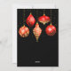 Skicka varma välgångsönskningar med detta sofistikerade julkort med fem eleganta ornament i röda och gyllene nyanser. Varje ornament visar upp en unik design - blommor, snöflinga, droppande falskt glitter, diamantmönster och stjärnor - mot en rik svart bakgrund med gyllene gnistrande detaljer. Den lyxiga paletten och det raffinerade arrangemanget gör detta kort perfekt för stiliga familjer, formella hälsningar eller företags julmeddelanden. Perfekt för dem som älskar modern elegans med en festlig twist.