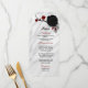 vackra röda och svarta blommor med grått löv på grått-marmorbakgrund botaniskt bröllop-meny. Uppgifterna om glitter simuleras