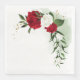 Vackra röda och vita blommor med grönt löv botaniskt bröllop papper napkin. Uppgifterna om guld glitter simuleras