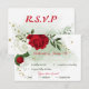 Mönstergigt anpassade botaniskt OSA kort med mjölval vackra rödblommor och vita blommor med grönt löv. Uppgifterna om guld glitter simuleras