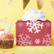 Svällning papper med ett vitt snöflingor mönster mot röd bakgrund. Perfekt för helgdagarna.