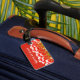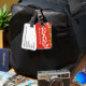 Vackra röda och vita tulpaner med rödfärgat trästängsel av orange för en blommigt som är lätt och glad att kunna göra en personifierad bagagetagg