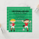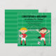 Om du vill ha denna design i andra färger, eller behöver två tvillingflickor som spelar fotboll eller en tvillingpojke och -flicka set, vänligen kontakta oss via vår Celebration Bazaar-butik så hjälper vi dig gärna. En rolig inbjudan till tvillingar som firar sin födelsedag med ett party och älskar fotboll med en illustration av tvillingpojkar klädda i röda och vita fotbollsuniformer på en bakgrund av en fotbollsplan och fotbollsmål. En av pojkarna har blondt hår medan den andra har brunt hår. Texten är helt anpassningsbar för detaljerna om dina tvillingar som fotbollsspelare.