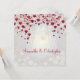 En elegant för ett vinterbröllop med röda kaskadhjärtan mot bakgrund av snurrar, stjärnor och snöflingor på en strålande vit bakgrund. färg i texten koordinerar med färg i de röda kärlek-hjärtan. Fullständigt anpassade för ditt speciella tillfälle. Detta koordinerar med Red Hearts on Radiant White and Snöflingor Bröllop Collection. Om du behöver hjälp med anpassningen för din speciellare dag eller vill ha den här i en annan färg-kombination eller på produkter som inte erbjuds med den här designen, kontakta oss via vår WeddingBazaar-butik.