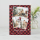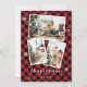 Anpassningsbar Red buffalo plaid God jul-kort med tre foton med snöflingor och stjärnor på en röd och svart buffelbaksida.