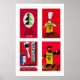 Röda polska tändsticksboxetiketter Grid Print, Vin Poster