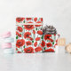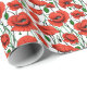 När man sveper pappert i ett känsligt mönster av pulserande röda vallmo med djupa gröntar och löv, i en viss bakgrund, med varje vallmoblomma unikt böjd och vriden, som om man sveper försiktigt i brisen.