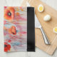 En kökshandduk med en vacker vattenfärgsbild. En fält av röda blommor med vackra vattenfärgsdroppar och fläckar.