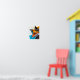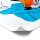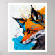 En stiliserad räv framställs med fetstilt, dynamiskt färg och dynamiskt linjer. Kombinationen orange, blått och svart skapar en slående kontrast mot ljusbakgrunden. Dynamiskt linjer och geometriska former förbättrar rävens utseende.