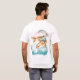En rasa röd fiskbanhoppning för tjur ut ur vatten med en rodeocowboyfiskare på hans baksida. Denna design skapades av en yrkesmässig konstnär Kelly Reark. Hon specialiserar i saltwaterfisk och landskap.