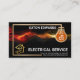 En faux-kopparströmkrets ram drivs av en röd elektrisk blixt som ljus med verktyg inuti en kolv. Bara bredvid lampan står ditt prestigefyllda namn. I närheten av kortbasen finns ditt företag namn och kontaktuppgifter med en elektriker logotyp i guld som du kan använda med. Logotypen guld-brev-e ligger överst och följs av er prestigefyllda namn, kontaktuppgifter och ett sloganalternativ för att sprida information om era tjänster. Ett underbart kreativ för elektriker till använda.