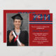 Ett modernt röd & blåttstudentenmeddelande som är designat till införlivat en fotografera av personen, som avlägger examen.