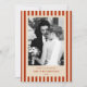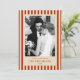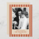 Omfamna romantiken och charmen under semestern med vårt eleganta och fullt anpassningsbara julkort "Merry & Married" med djupa röda ränder, en perfekt blandning av vintageelegans och gammaldags sofistikation.