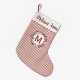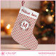 Fira högtidsstämningen med denna anpassningsbara julstrumpa som har en enkel julkrans i varma nyanser av rött, brunt och beige, en klassisk röd och vit randig bakgrund och en trendig kant med vågig kant. Perfekt för att lägga till en touch av lantlig charm i din juldekoration, kan denna strumpa anpassas med namn och initial för att skapa en unik present till familj eller vänner som kommer att bli en älskad del av deras julfirande i många år framöver. Häng den vid eldstaden eller på kaminhyllan för att skapa en fantastisk mittpunkt i din julheminredning.