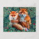 RÖDA RÄVAR BLAND GRÖNSKAP, LÖV OCH BLOMMOR VYKORT