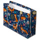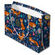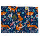 Cute Red foxes med blommor och fåglar i sömlös mönster över blå bakgrund.