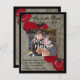 Elegant design för dina brölloppsinbjudningar till strandbröllop med röda hjärtformade rosenblad utspridda längs en tan/brun sandstrand. Perfekt för strandbröllop, resort, kryssning, destination eller resebröllop! Bröllopsinbjudan och matchande tillbehörssats. © 2010 www.CustomInvitesOnline.com
