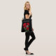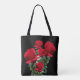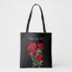 Brudens eller brudgummens mor, röda rosor väskan. Text på ena sidan av svart påse med röd text och realistisk rosdesign.