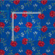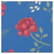 Röda rosor på medelblå överstor kaliko tyg