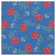 Små kvistar röda rosor och vit gipsört i charmig randig kalikåtryck