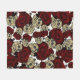 Röda rosor & skallar Svart floral gotisk vit Fleecefilt