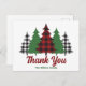 Dessa rustika skräddarsydda julkort med trendigt röda rutor och gröna julgranar ovanför ditt meddelande God Jul. En söt personlig och traditionell look som för närvarande är på modet igen, detta festliga tackkort är perfekt för en familj som gillar en klassisk och nostalgisk design.