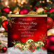 Julhögtid Julfest Inbjudan. Elegant röd silver, guld & pärlor med guldgnistrande glitter på en silver snöflinga bakgrund. Observera: Alla platta bilder!