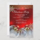 Julparty inbjudan. Eleganta röda silver, guld & julgransprydnader med gnistrande guldglitter på en silver snöflinga bakgrund. Observera: Alla platta bilder!