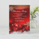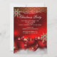 Jul firande fest inbjudan. Eleganta röda silver, guld & julgransprydnader med gnistrande guldglitter på en silver snöflinga bakgrund. Observera: Alla platta bilder!