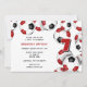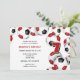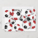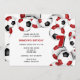 Den här fotbolls-temainbjudan innehåller kluster av röda, svarta och vita fotbollar på högerna och överst kant på framsidan och ett enda kluster som täcker baksidan av inbjudan - anpassa informationen om party på vit bakgrund - av katz_d_zynes