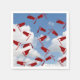 Flygburna röda hattar i studenten i blå himmel med vita moln