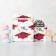 Röd studentmössa och diplom med guld konetti mot vit bakgrund. Bakgrunden till färg kan ändras.