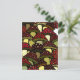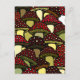 Ett vykort med många rödtäckta svampar med vita prickar och blekar.
