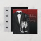 Elegant svart smoking festinladningskort. Denna klassiska svarta och röda festinbjudan har en svart smoking och ett par champagneglas och kan enkelt anpassas för din händelse genom att helt enkelt välja "Anpassa!" -knappen för att börja lägga till dina evenemangsuppgifter, typsnitt, teckenstorlek och färg samt formulering. Observera att alla kort- och inbjudningsdesign du hittar på Zazzle är tryckta grafik med inga faktiska juveler, band, upphöjda, präglade eller tillagda delar eller bitar.