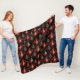 Vacker filt med vackra gyllene tallar på röda och svarta helgdagstyg. Ett tygstycken mönster med röda och svarta tygstycken.