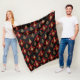 Röda svarta tygstycken med guld julgranar fleecefilt