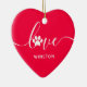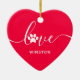 Bevara minnet av ditt älskade husdjur med denna personliga hjärtformade julgrynsdekoration. Med en röd bakgrund med en vit tassavtryck accent och ordet "kärlek" är denna dekoration ett vackert sätt att hedra din lurviga vän. Anpassa med ditt husdjurs namn för en verkligt unik souvenir. Lägg till ett foto av ditt husdjur på baksidan för att göra det extra speciellt.