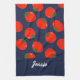 Röda tomater i blått kökshandduk