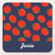 Lägg till ditt namn på den här röda tomaterna på den blå bakgrundsdesignen mönster.