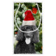 Cute Pudel Hund bar röd tomhatt med Julgran Snögubbe i bakgrunden.