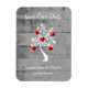 Meddela din kommande bröllopsdag för familj och gäster med Röda Träd i Hearts Spara datum magneter. Magnetkonstruktionen har en bakgrund av grått-trä som är försedd med ett träd med blommande hjärtan på grenar. Anpassa till namn i brudgummen och till bröllop-datumet. Ytterligare bröllop-kontorsmaterial och presenter som finns tillgängliga med den här utformningen också.