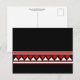 Djärk svart bakgrund med vita och röda trianglar i ett tribalinspirerat mönster för heminredning, modeaccessoarer, presentförpackningar och efterrätter design..