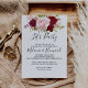 Denna röda tropiska och romantiska låt oss firar inbjudan är perfekt för en rustisk förlovning. Den konstnärliga utformningen av Border marsala har vattenfärg, grönt, rosa, burgundy och ro, som har en grön, nyttigt placerad blombukett i en strålande och strålande blombukett. Den här inbjudan kan användas för en förlovningsfest, pension party, babydusch eller vad som helst!