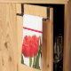 Röda tulippar på ett vitt solljus i fast form kökshandduk