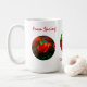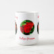 Vacker kaffemugg med röda tulpanblommor. Kan anpassas. Du kan byta ut tre bilder av tulpaner en efter en och du kan ändra eller ta bort de tre malltexterna Från vår, Med kärlek och Tulpaner för evigt. Ha kul!