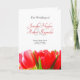 Anpassadets bröllopsprogram med rött tulpanfoto. Tackkortet på baksidan av detta kort gör det också till en underbar souvenir.