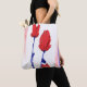 Röda tulpaner med blå tygkasse