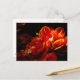 Röda solbelysta tulpaner mot mörk bakgrund. Ljus och skugga spelar.
